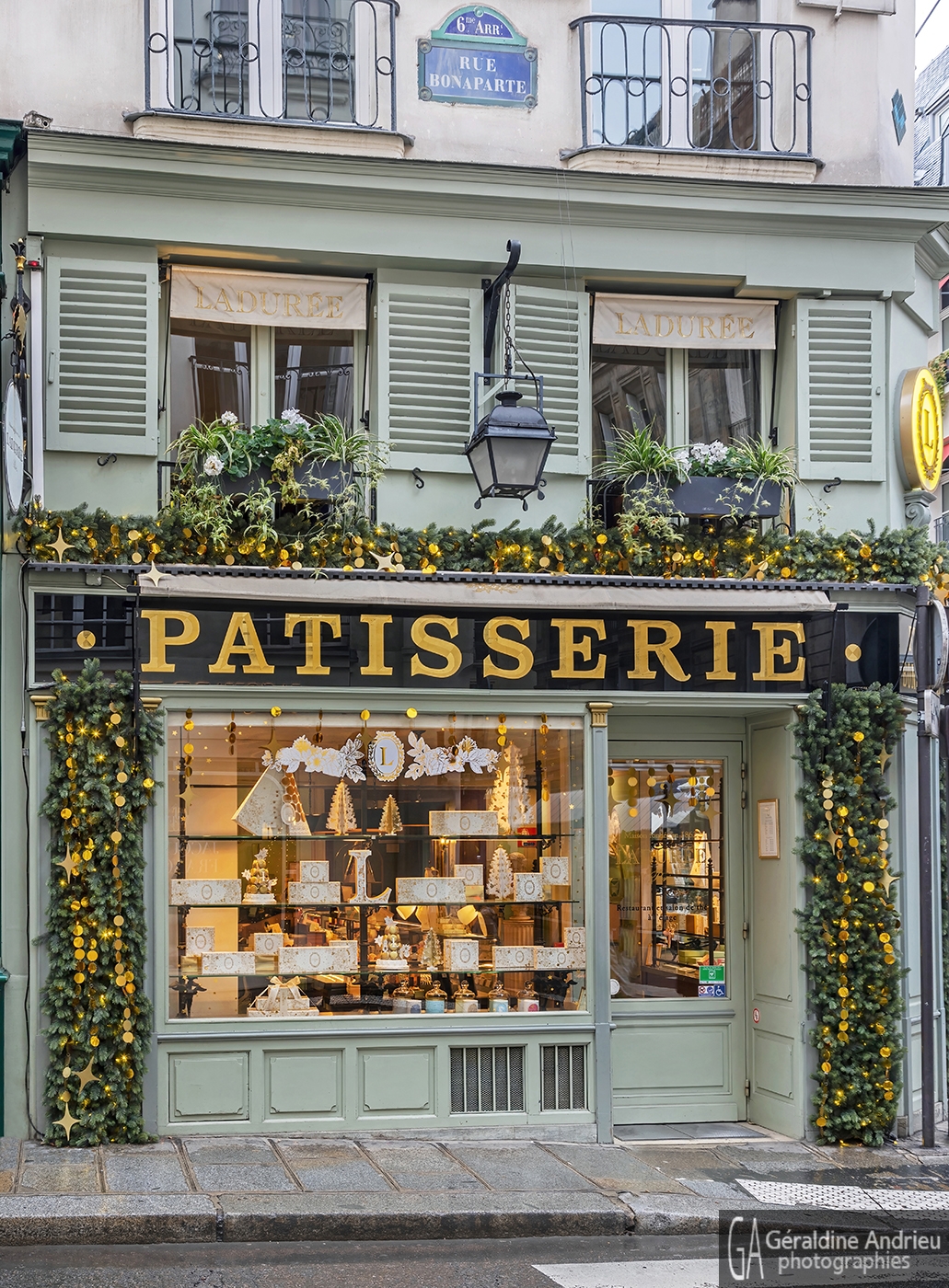 Vitrine Noel 2024 Ladurée Rue Bonaparte : décor par La Belle Saison