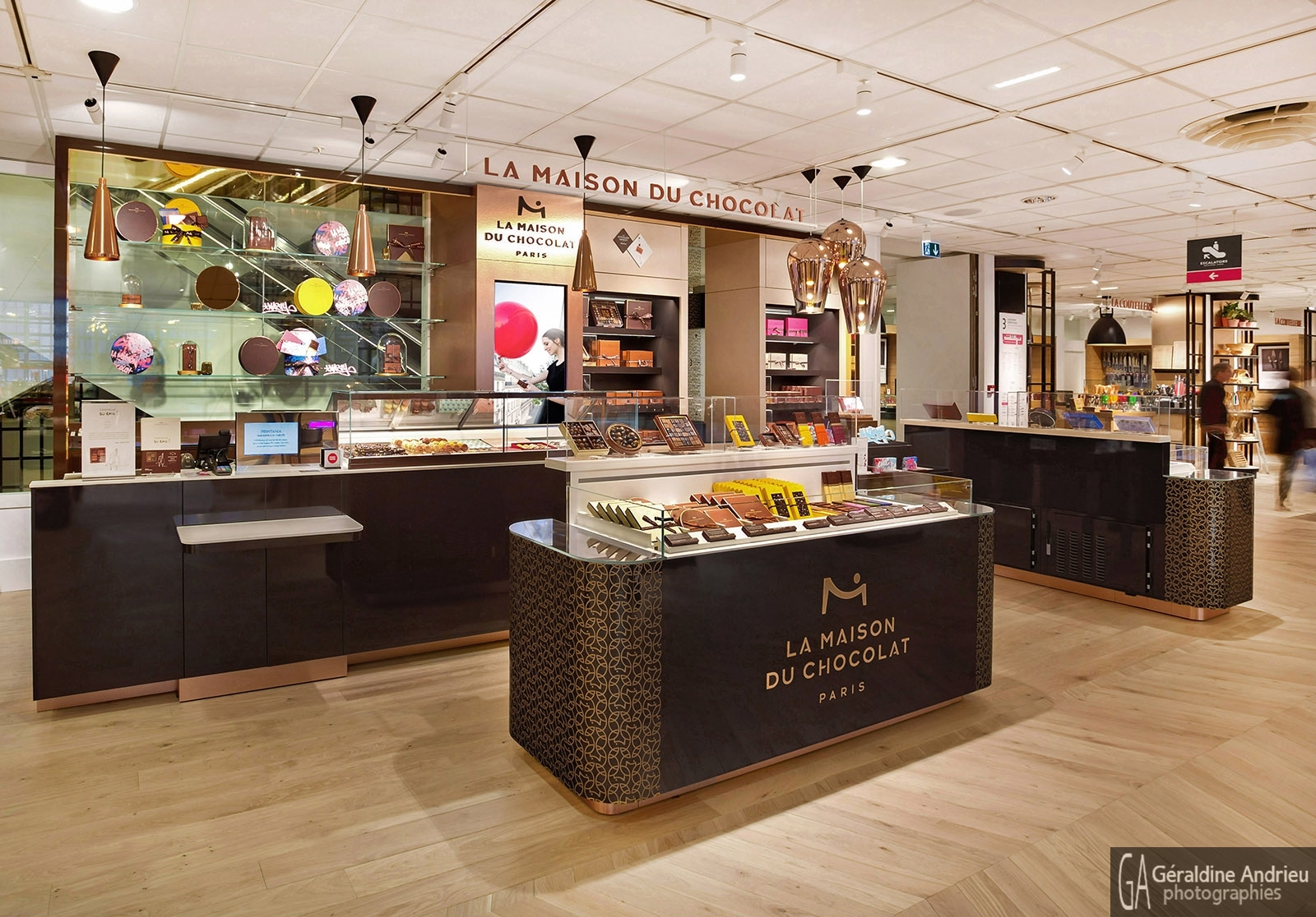 Photographies de boutiques, stands, showrooms, pop up store, architecture, espaces de vente, design, événementiel. Stand Maison du chocolat Printemps Paris