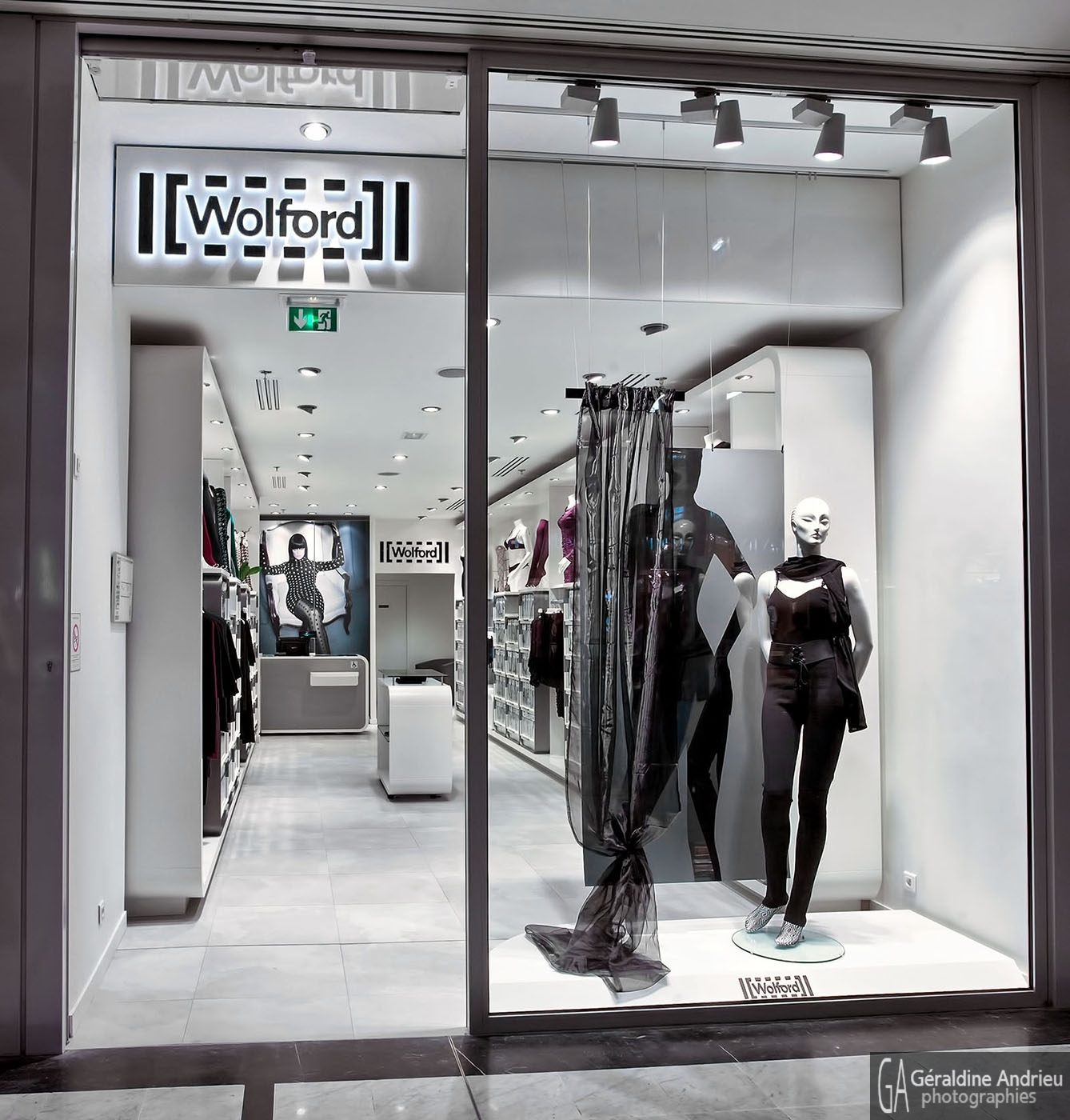 Photographies de boutiques, stands, showrooms, pop up store, architecture, espaces de vente, design, événementiel. Boutique Wolford Rue de Passy Paris